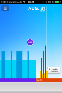 Ich bin ein Spielkind… gebe ich gerne zu. Anfang des Jahres (März oder April) habe ich mir ein Jawbone UP gekauft. Schrittzähler von früher waren immer doof. Dieser hier versprach mehr spaß :-) Zudem analysiert er den Schlaf und weckt entsprechend dynamisch eben nicht in einer Tiefschlafphase sondern ggf 20 Minuten früher aber auch spätestens zu der Zeit, die Du eingestellt hast. Klasse :-)