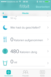 Eben so bietet die App keine Datenbank mit angelegten std. Nahrungsmitteln wie beim UP. Dafür kann man seinen Flüssigkeitshaushalt eintragen. Nicht schlecht.