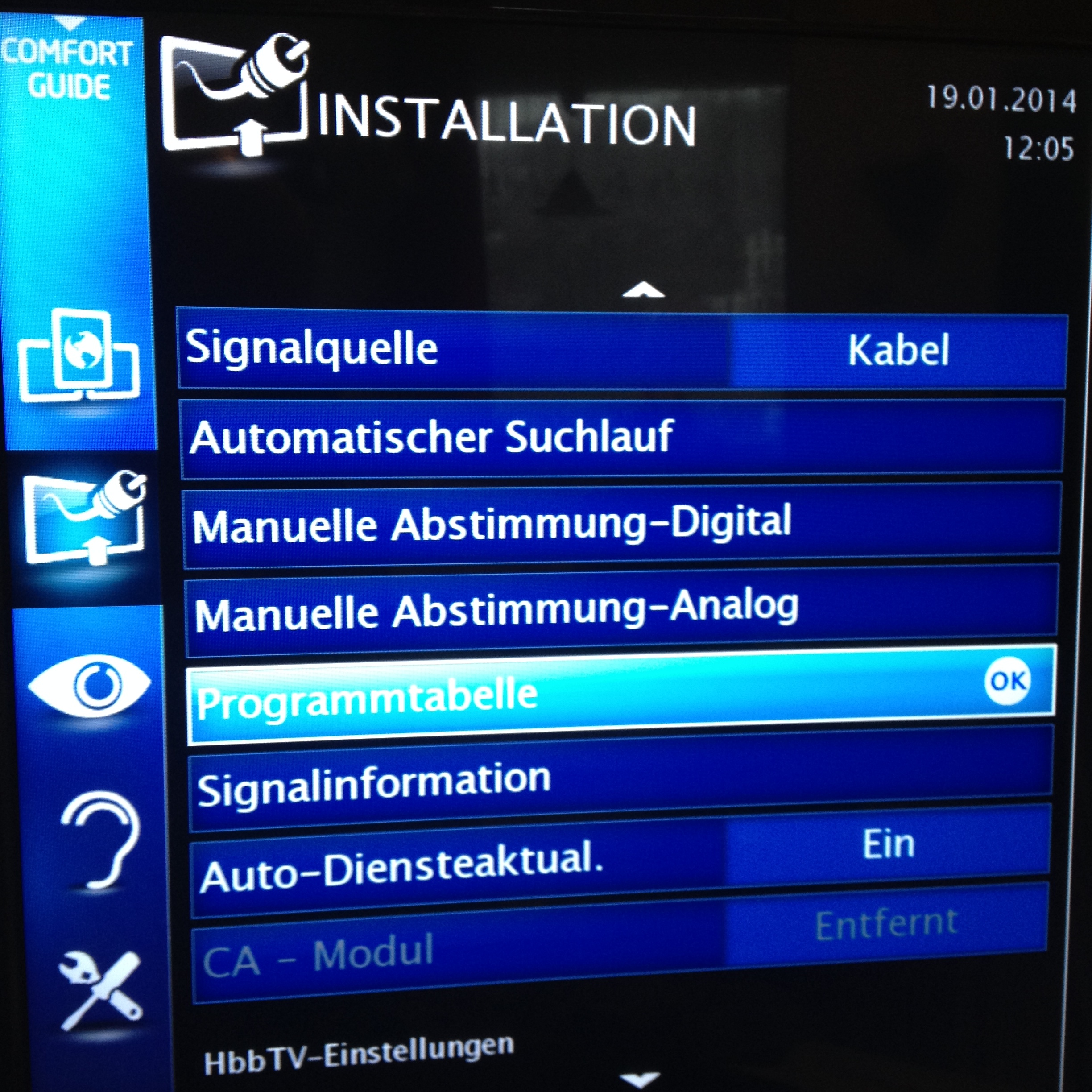 Gleich als erstes: Ich mach das gerne. Für Mutti sowieso. Natürlich! Es ist aber jedes Mal der gleiche Mist. Da macht man einen Sendersuchlauf und bekommt 340 Sender angezeigt. Nun gilt es diese passend nach dem Gusto des Besitzers zu sortieren. Und ich sage euch: Auch eure Mutti hat ARTE nicht auf 4 oder WDR auf 7. Also heißt es jetzt: Von der Glotze #1 die Senderliste abschreiben (fail #1) und sortiert dann ca. 80 Sender auf der neuen Glotze (fail #2). Arghhh.